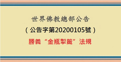 世界佛教總部公告 (公告字第20200105號) 勝義“金瓶掣籤”法規 ... (詳全文)