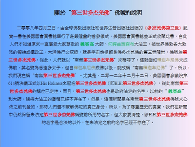 學習H.H.第三世多杰羌佛及南無釋迦牟尼佛如來正法