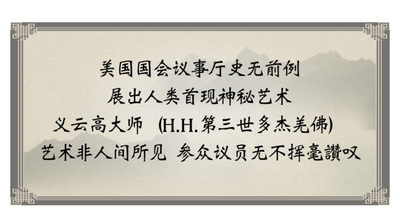 美国国会议事厅史无前例展出人类首现神秘艺术 义云高大师(H.H.第三世多杰羌佛)艺术非人间所见 参众议员无...