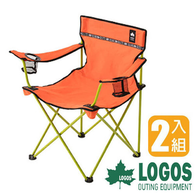 【本周限時刷卡折扣】【日本 LOGOS】ROSY 休閒椅_耐重80kg-扶手置杯架.折疊椅(橘 73170041_兩入組) 精選