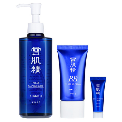 美妝盒 2018 youtube ptt 【KOSE 高絲】即期品 雪肌精淨透潔顏油250ml+淨白黑面膜10g+防護淨白BB霜30g #01(百貨公司貨)
