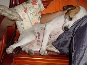 一歲多的公狗,開始會為了母狗爭風吃醋,Lucky也不例外。但是他總是打輸附近的一隻黃狗,因此只有一邊哭一邊在旁觀摩的份。尤其是後來寶寶又結紮了,每到發情的時節(初春、初秋)就是他最難熬的時刻,幾乎整天...