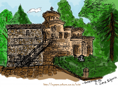 波揚納教堂是座隱藏在山中森林的世界文化遺產,我心情愉悅的走在陽光散落的步道上,偶爾傳來零星參觀遊客的閒談聲。我坐在教堂外面圍著的小石椅上畫下教堂的模樣,有一位先生像是專業攝影師似的到處尋找光影合適的角度拍照。偶爾有工作人員帶著幾位想要參觀教堂的客人,拿著鑰匙打開教堂小門進入參觀,這是間兩層的磚造小教堂,充滿歷史古味。