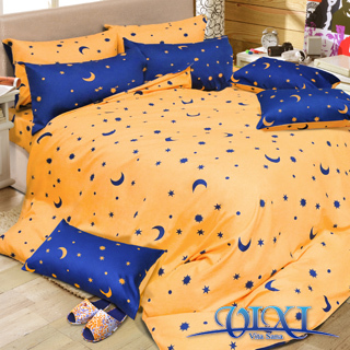 momo購物台,momo購物網>【VIXI-威瑟斯】《星月異》特級棉雙人床包被套孕馦?黃)