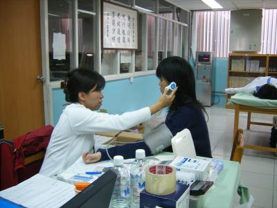他在看我的血格合不合格,很高興這些我都合格也代表我能捐血