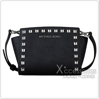樂天MK MICHAEL KORS SELMA銀字鉚釘設計防刮皮革斜背包(迷你-黑)