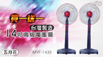 經典限量! 敗家無罪!體驗【五月花】 台灣製造14吋高級 電風扇 MYF-1435 (買一送一) 共-這邊買最省