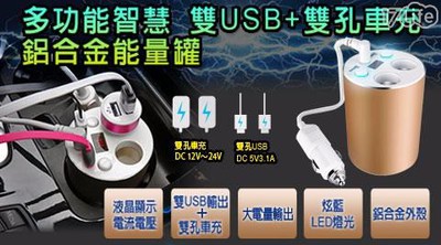 獨家! 入手最新的多功能智慧 雙USB+雙孔車充 鋁合金能量罐熱賣中!