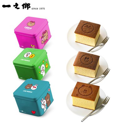 ▲ 【一之鄉】LINE FRIENDS繽紛趣-郊遊綠+熱戀藍+熊妹龍眼花蜜蜂蜜蛋糕禮盒★食用完畢可收納小物★一次通通滿足 的實物拍攝