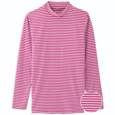 ▲ +5℃男款半高領保濕發熱保暖上衣(寬條款) (玫米條紋) 的實物拍攝