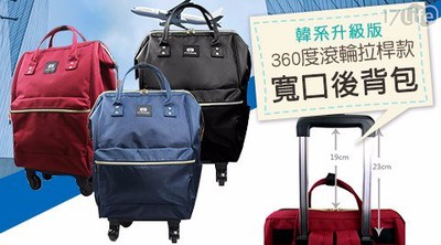 結果發現!這邊限定優惠卷韓系升級版360度滾輪拉桿款寬口後背包" 居然有貨