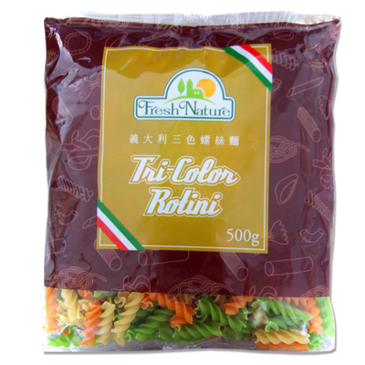 • 品名:《義品園》三色螺絲麵(500gX2入)