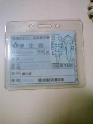 這是我的學生證阿 本人長的實在是不能看阿 所以就把他貼起來啦 ㄏㄏ!!....把一些重要資料遮起來了!! 我貼了好久...都沒被發現~ya!!