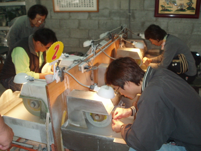 我們應該要自己按照工作人員的指導自己磨玉石的,但我很怕機器,還是請工作人員幫忙,都是老闆一家人幫忙磨的玉,謝謝。如豐琢玉工坊http://www.taiwanjade.com.tw