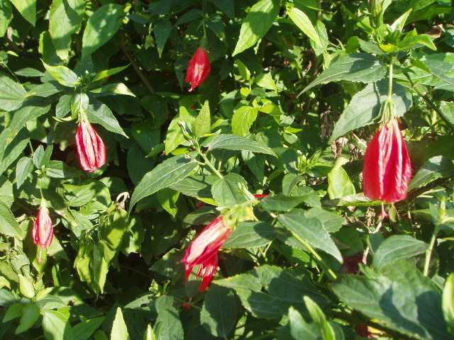 南美朱槿,與綠色花萼相接的花處有很甜的蜜
