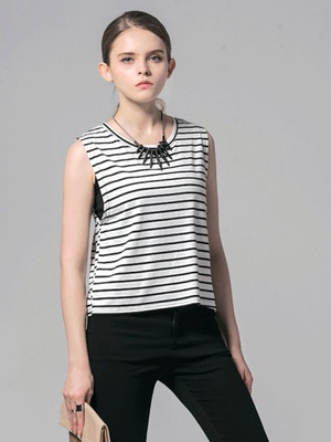 【本季最新款推薦】假兩件橫條紋圓領無袖上衣-2色 團購驚喜價