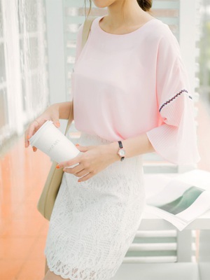 鏤空雕花X條紋拼色喇叭袖口純色雪紡上衣.2色 購買限時優惠,購買限時折扣,推薦必選禮物,哪裡買最省錢,限時活動,限時活動折扣,限時活動優惠,限時商品,限時商品購買折扣,限時商品購買優惠,限時折扣,限時優惠,限量商品