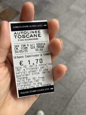 睡醒之後,準備展開我在佛羅倫斯的第一天…因為前一晚下雨,加上看氣象也說隔天會下暴雨,其實對於晚上要看夕陽的事有點想改時間,但還是決定先來買車票。佛羅倫斯的公車可以刷卡,但有人說因為刷卡記...