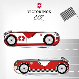 可愛的復古汽車居然與瑞士刀如此搭配,車門、車燈、方向盤一應俱全。你準備好帶著它一起出遊了嗎?