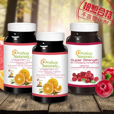 搶購【加拿大優沛康】36倍蔓越莓500mg濃縮膠囊+維他命C 8小時緩釋錠2入(90粒裝)