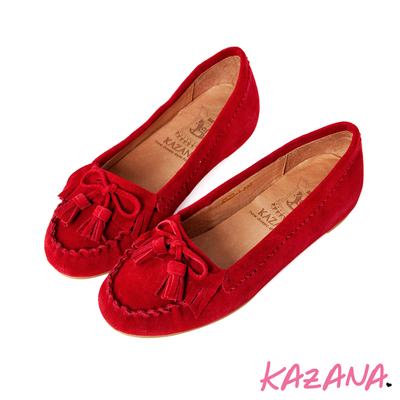 KAZANA好感宣言。全真皮流蘇內增高莫卡辛鞋 紅