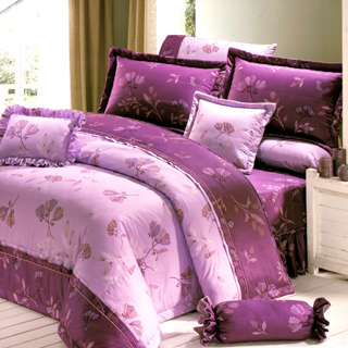 【巴麗維亞】紫花葉語(頂級加大AB花版活性精梳棉兩用被床包組臺灣精製)