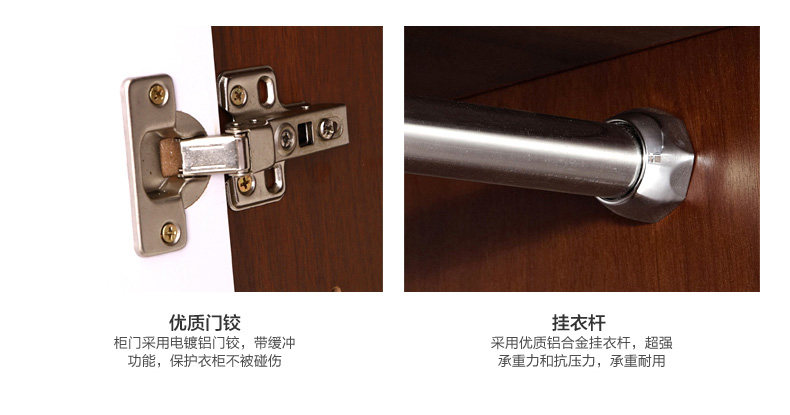 3.[-優質材質-]:掛衣桿和掛衣托材質:銀色鋁合金,有超強的承重能力,使用壽命長,門鉸材質:電鍍鋁帶有緩沖功能;