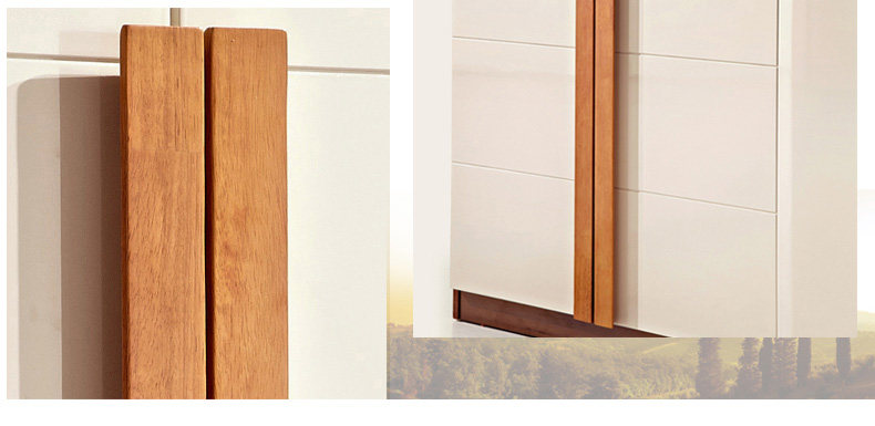 【主材料】1.[-高檔實木-]:衣柜門拉手采用優質橡膠木,實木質感好,紋理優美、質地均勻, 天然高強度的耐磨性能;