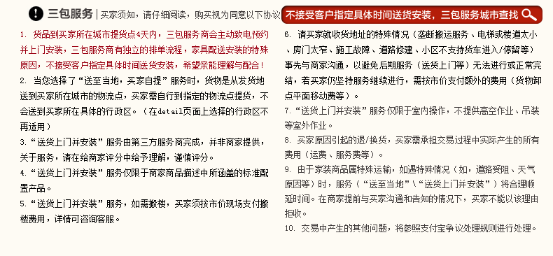 【生產周期】家具生產需要一定周期,發貨時間請以與客服協商為準,同時為保障發貨信息無誤及準時發貨,請保持旺旺及電話暢通