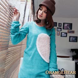 【OB嚴選】毛茸茸愛心圖案長版針織T恤‧共三色