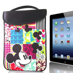 米奇10吋平板及小筆電保護袋(黏扣式) ~適用蘋果ipad系列~ ~適用10吋及以下之平板與小筆電~ ~潛水布料,防碰撞、防潑水、伸縮性、易清洗~ ~防刮天鵝絨內裡,防潑水加工處理~ ~黏扣式取放方便,浮雕烙印、織繩提把~