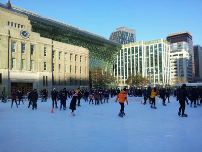 明天休假不用早起,老公又出差不在不會管我,所以今晚我熬夜了~這張照片是首爾的朋友寄來祝我們新年快樂,市政廳前的廣場變成滑雪場了,今年冬天的首爾很寒冷~我其實想再去首爾(因為去年10月去參加公職人員研習...