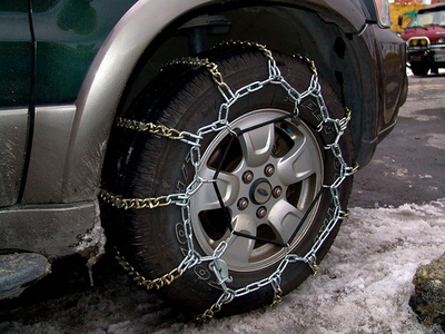 分享我的雪鍊.台中建國市場買的,一組兩條滿粗的,接地面有釘狀爪子.記得價格是兩千元?...*圖中用於緊束雪鍊的...