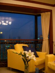 卻仍有一絲夕陽餘暉透過落地窗灑落的客廳沙發上,
