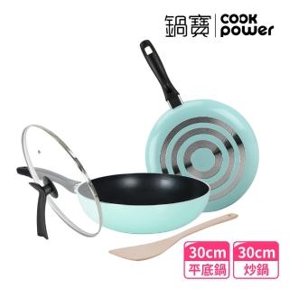 【預訂折扣優惠】【鍋寶】金鑽不沾雙鍋四件組-30CM-蒂芬妮藍(30CM炒鍋+30CM平底鍋+蓋+木鏟) 哪裡買最省錢