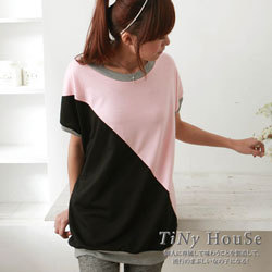 【TiNyHouse】百搭蝴蝶公主袖圓領素面長版T 強烈對比色的拼接調調顯露出亮眼個性 連袖長版的寬鬆版型更加輕鬆自在