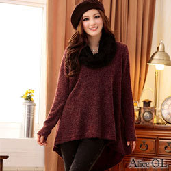 【Alice OL】前短後長毛料針織寬鬆上衣(共二色) 簡單素色彈性針織 極簡名媛風低調貴氣 前短後長剪裁拉長身形比例 附上保暖領圍輕鬆搭配造型