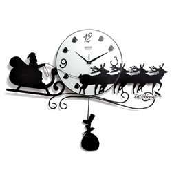 TaiCheng歐式聖誕老公公拉麋鹿藝術玻璃掛鐘-禮物搖擺時鐘