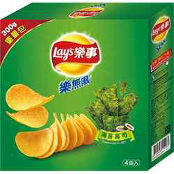 | 樂事樂無限 家庭號-海苔(300G) 樂事樂無限,以精選新鮮天然的馬鈴薯,製成片片金黃、口口酥脆的頂級洋芋片,配上金黃多汁的鮮嫩烤雞,歡樂分享無限美味。