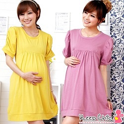 【Keep Chic孕婦裝】大方圓領高腰活力洋裝(共二色) 簡單大方的設計剪裁 圓領高腰更拉長身型 讓媽咪展現青春活力