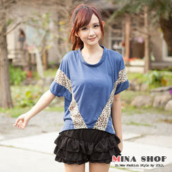 【米娜mina中大尺碼】層次搭配~短版設計倒三角豹紋前短後長上衣