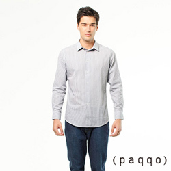 (paqqo) 條紋長袖棉質襯衫-灰
