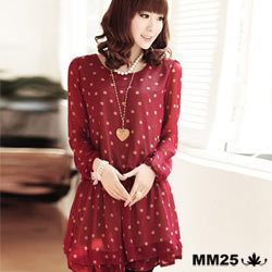 【MM25】圓領長袖波點洋裝(紅色) 選這樣一款連衣裙絕對可以生動你的心情 淡淡的水粉色在加上與裹胸處甜美蕾絲的結合 讓人心情大好,性感圓潤的領口 讓優雅的鎖骨和脖頸不經意間顯露的如此美好安靜 腰間采用束腰 設計,勾勒出優美的曲線 整個夏季,怎?能夠少掉雪紡的身影 怎?能夠遠離雪紡的舒適觸感呢