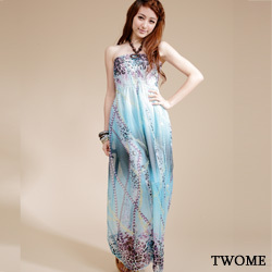 【TWOME】木項鍊後綁雪紡長洋裝(豹紋藍)
