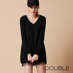 【DOUBLE】MIT V領寬版造型下襬針織衫(黑S-M) |