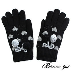Blossom Gal布洛詩-愛心蝴蝶結雙層裏毛手套(黑) 可愛的愛心搭配蝴蝶結超甜美 細緻的毛線編織雙層裏毛柔軟又保暖 微笑MIT,值得信類好品質