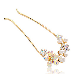 Natural 秀雅端莊閃亮奪目花朵髮叉 髮簪