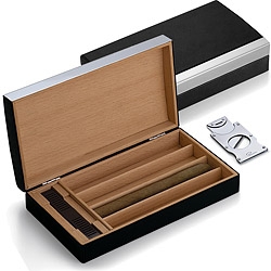 | 《PHILIPPI》Habana 雪茄防潮收藏盒 追求經典一直是 PHILIPPI 的設計主軸,也致力於將簡約外型與實用功能緊密結合。台灣海島型氣候潮濕高溫,對於雪茄的保存需要更費心,避免影響到雪茄原味。此款防潮收藏盒內盒以天然柏木為材質,內有一防潮器,適合擺放約直徑 2 x 長 15.8 cm 的雪茄,共可收納 4 支。內附雪茄剪,刀面俐落雅緻,內徑約 2 cm寬。PU 皮革外盒搭配雅緻的柏木內盒,精美禮盒包裝。磁性開闔設計,使用更方便。承襲 Habana 系列一貫的簡約風格,將冷冽金屬與質感細緻 PU 皮革結合,襯托您都會雅痞。