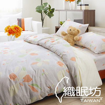 織眠坊《花漾-米》台灣精製純棉加大四件式涼被床包組