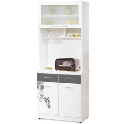 【居家生活】華爾頓2.7尺白色印花碗盤櫃(上+下)
